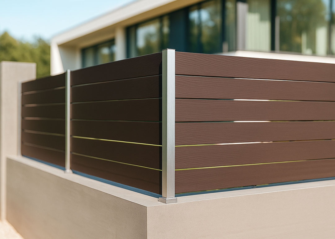 Η κολώνα έχει ενσωματωμένες εσωτερικές εσοχές για την εφαρμογή των WPC περίφραξης και κουμπώνοντας τα αξεσουάρ μπορεί να δημιουργηθεί κολώνα γωνιακή ή σχήματος “Τ”με κρυφή στήριξη χωρίς να φαίνονται οι βίδες!