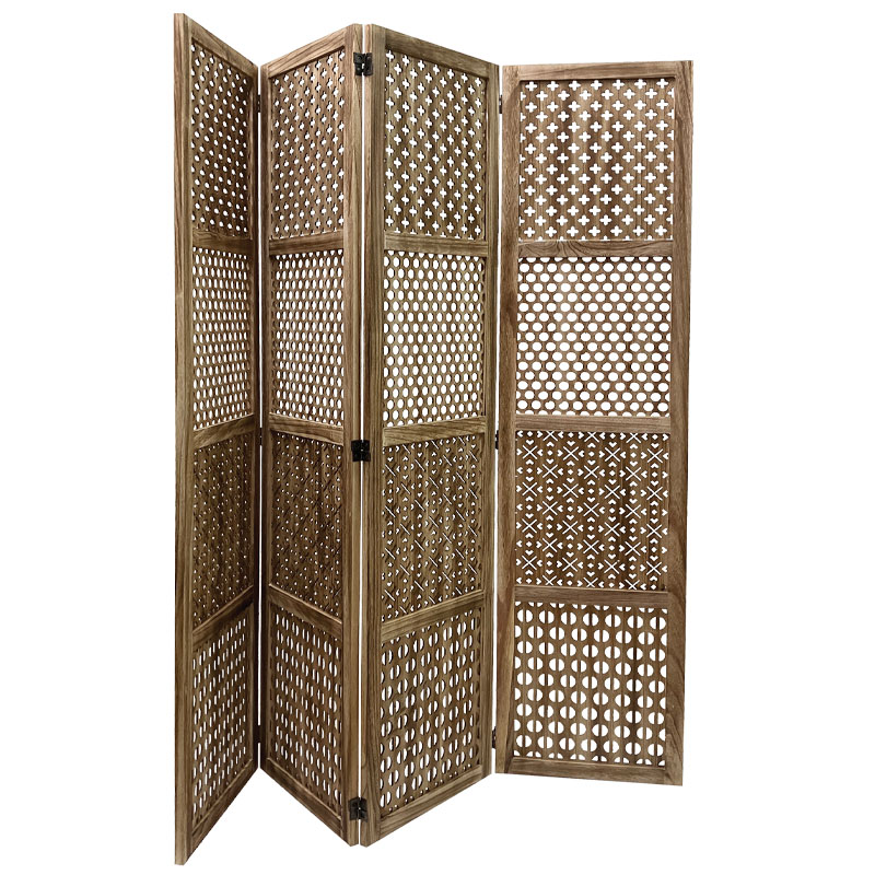 ΠΑΡΑΒΑΝ ΞΥΛΙΝΟ ΦΥΣΙΚΟ ΚΑΦΕ ME ΔΙΑΤΡΗΤΑ ΜΟΤΙΒΑ ΜΠΟΧΟ – 160(4×40)x170cm 1/KIB Κωδικός: 19-26224 ΜΧ :2492 20