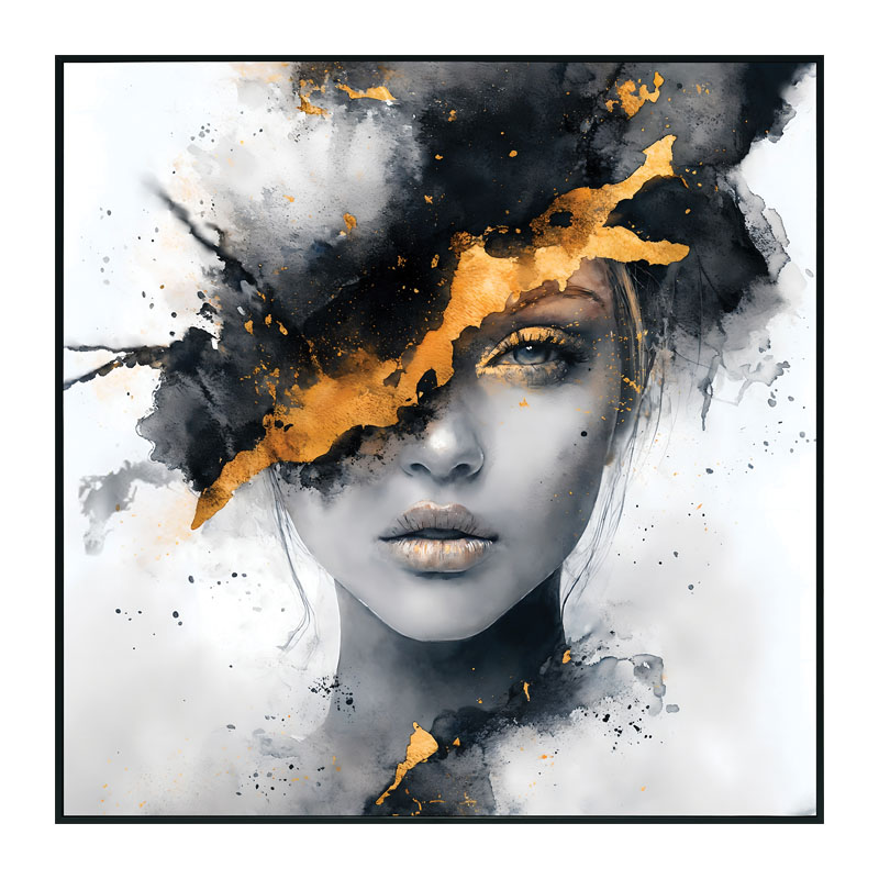 ΠΙΝΑΚΑΣ ΚΑΜΒΑΣ ΑΣΠΡΟΜΑΥΡΟ ΜΙΣΟ ΠΡΟΣΩΠΟ ΓΥΝΑΙΚΑΣ ΜΕ ΧΡΥΣΗ ΛΕΠΤΟΜΕΡΙΑ 82x82CM 6/KIB