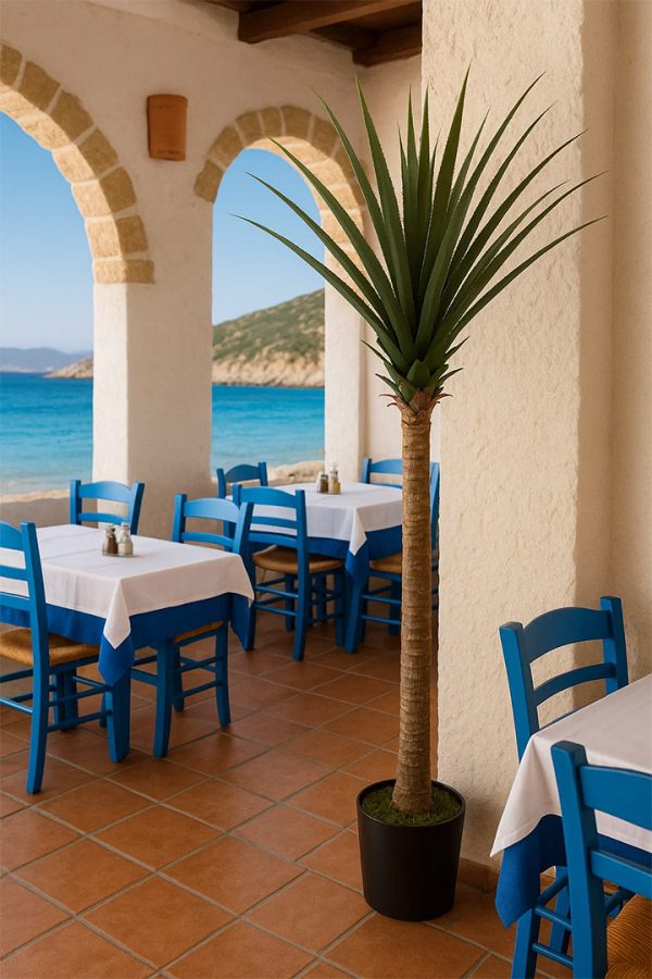 Το τεχνητό δέντρο Αγαύη είναι ένα εντυπωσιακό φυτό που αποπνέει μοναδική γοητεία. Έχει παχιά αιχμηρά φύλλα σκούρης πράσινης απόχρωσης που αναπτύσσονται σε έναν επιβλητικό καφέ κορμό.