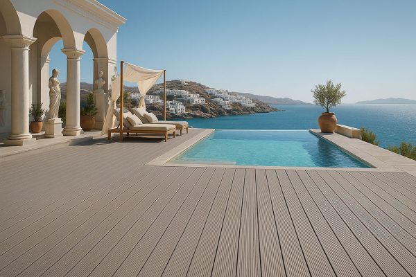 Συνθετικό δάπεδο Deck WPC εξωτερικού χώρου που αποτελείται από 55% ξύλο και 35% HDPE και 10% ρητίνες, UV σταθεροποιητές κλπ. Είναι διπλής όψης με στενό χτένι στη μία όψη και φαρδύ στην άλλη. Ιδανική επιλογή για πάτωμα πισίνας, βεράντας, εξωτερικούς χώρους καταστημάτων, κήπους, μαρίνες κλπ.