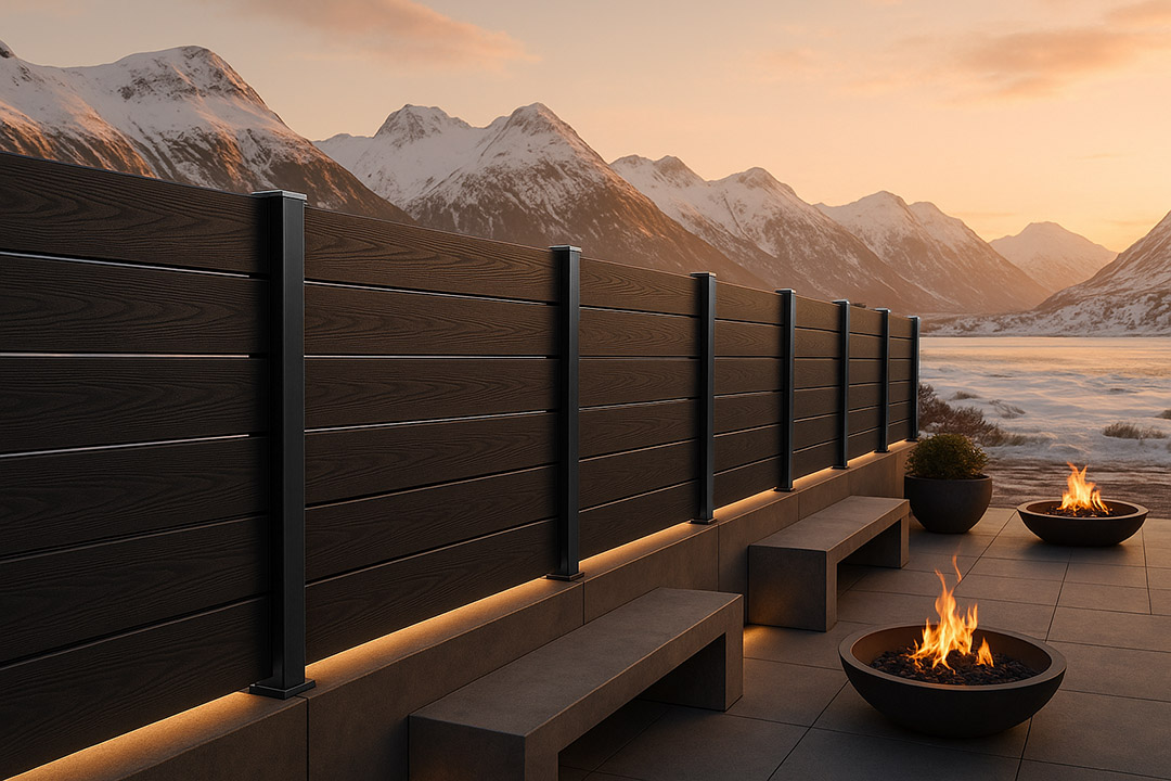 Συνθετικό Deck WPC νέας γενιάς περίφραξης εξωτερικού χώρου που αποτελείται από 55% ξύλο και 35% HDPE και 10% ρητίνες, UV σταθεροποιητές κλπ. Είναι διπλής όψης με ανάγλυφα 3D νερά ξύλου. Η περίφραξη με WPC έχει προσιτή τιμή και είναι κατάλληλη για πολλές εφαρμογές όπως περίφραξη οικοπέδου, κήπου ή πισίνας, εξωτερική περίφραξη, επένδυση τοίχου, φράχτη, αυλόπορτας κτλ.Φυσικά Χαρακτηριστικά