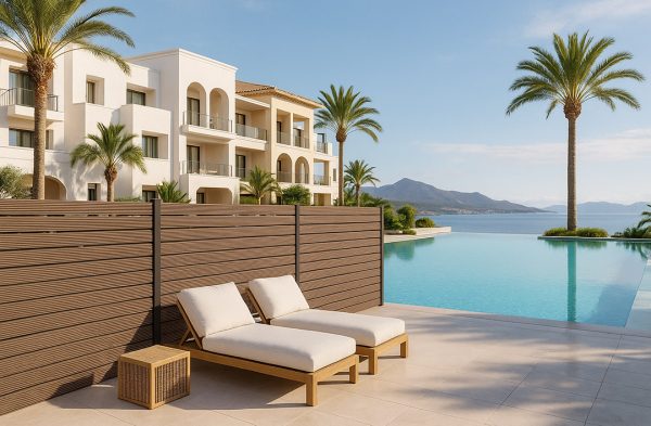 Συνθετικό Deck WPC περίφραξης εξωτερικού χώρου που αποτελείται από 55% ξύλο και 35% HDPE και 10% ρητίνες, UV σταθεροποιητές κλπ. Είναι διπλής όψης με στενό χτένι στη μία όψη και φαρδύ στην άλλη. Η περίφραξη με WPC έχει προσιτή τιμή και είναι κατάλληλη για πολλές εφαρμογές όπως περίφραξη οικοπέδου, κήπου ή πισίνας, εξωτερική περίφραξη, επένδυση τοίχου, φράχτη, αυλόπορτας κτλ.