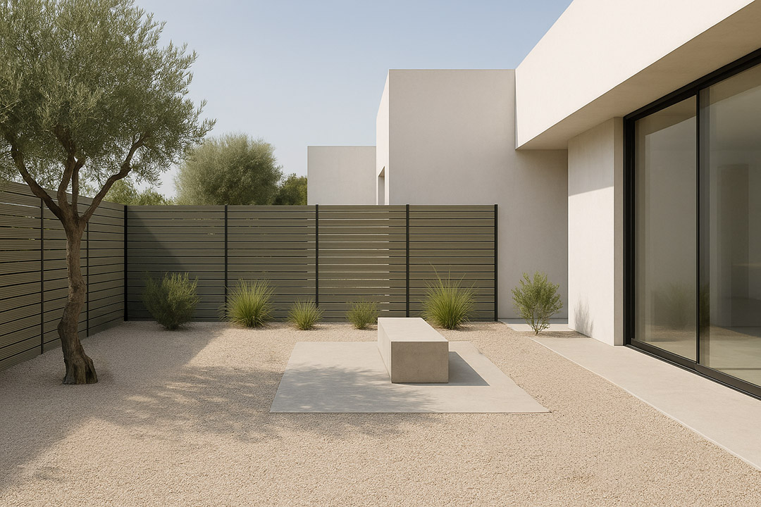 Συνθετικό Deck WPC περίφραξης εξωτερικού χώρου που αποτελείται από 55% ξύλο και 35% HDPE και 10% ρητίνες, UV σταθεροποιητές κλπ. Είναι διπλής όψης με στενό χτένι στη μία όψη και φαρδύ στην άλλη. Η περίφραξη με WPC έχει προσιτή τιμή και είναι κατάλληλη για πολλές εφαρμογές όπως περίφραξη οικοπέδου, κήπου ή πισίνας, εξωτερική περίφραξη, επένδυση τοίχου, φράχτη, αυλόπορτας κτλ.