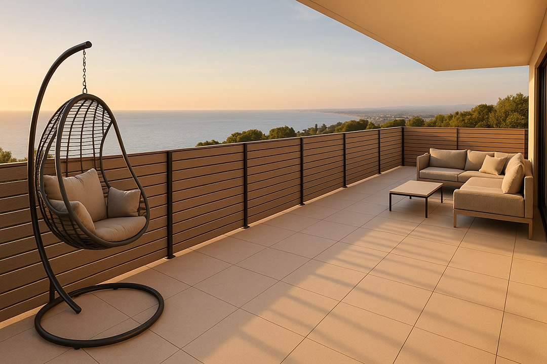 Συνθετικό Deck WPC περίφραξης εξωτερικού χώρου που αποτελείται από 55% ξύλο και 35% HDPE και 10% ρητίνες, UV σταθεροποιητές κλπ. Είναι διπλής όψης με στενό χτένι στη μία όψη και φαρδύ στην άλλη. Η περίφραξη με WPC έχει προσιτή τιμή και είναι κατάλληλη για πολλές εφαρμογές όπως περίφραξη οικοπέδου, κήπου ή πισίνας, εξωτερική περίφραξη, επένδυση τοίχου, φράχτη, αυλόπορτας κτλ.